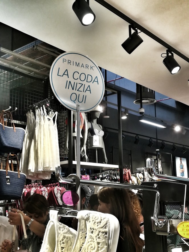 Realizzo per un attimo che NON HO COMPRATO NULLA , no non posso uscire a mani vuote , accanto a me c’è lo scaffale degli slip ne afferro sei paia , corro alla cassa saltando la fila tra le facce arrabbiate dei clienti ….lancio gli slip a mio marito sfiorando la testa di uno in coda che per poco non se le ritrova in faccia … Esco da Primark sfiduciata troppa scelta e nessun acquisto!
